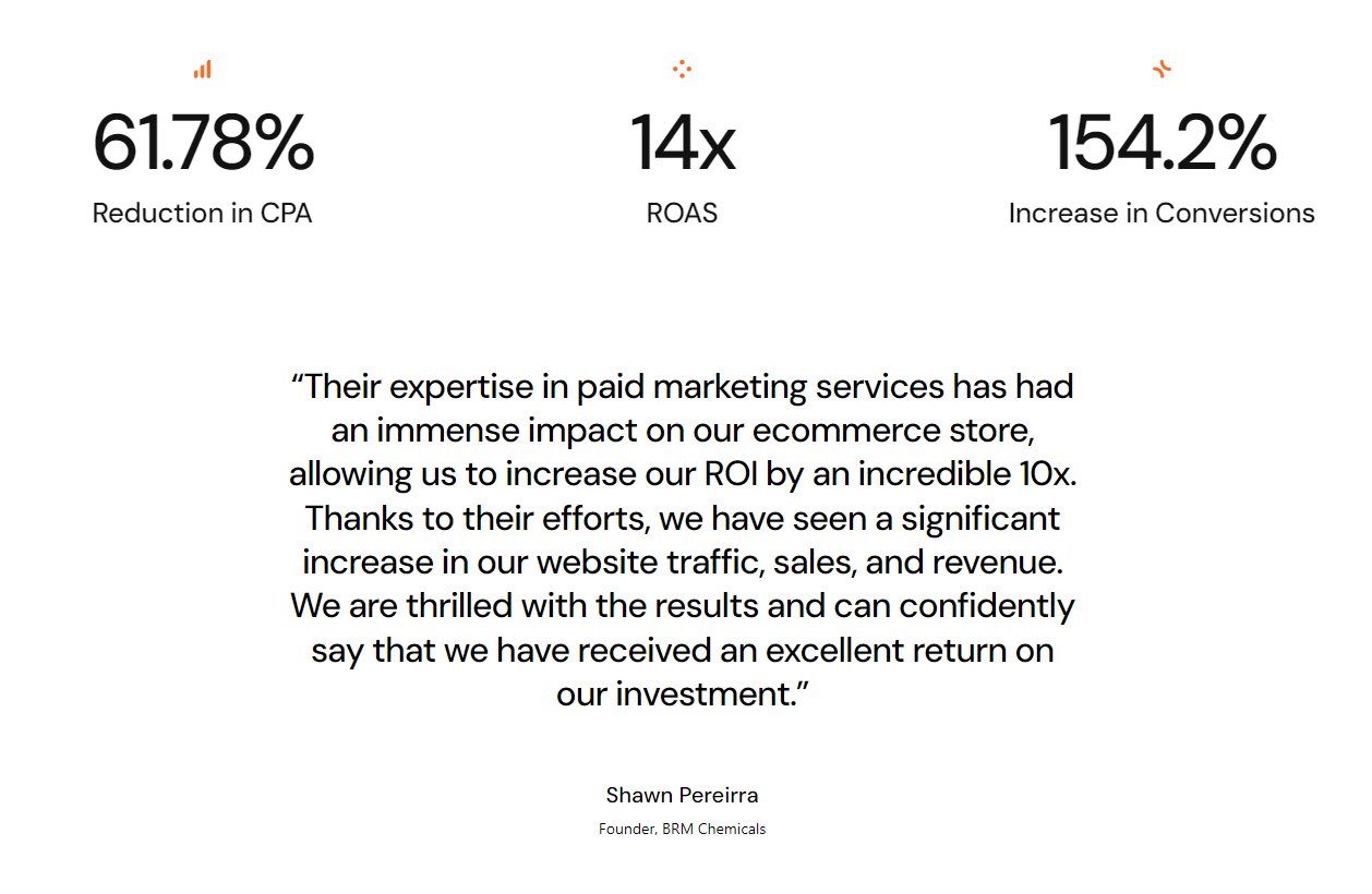 BRM Chemicals illustrates the benefits of promotional marketing to increase sales and profitability. Through PPC Studio and it’s top notch marketing solutions, it was able to quickly raise sales and profitability, earning an outstanding ROI of 14%. This success story highlights the value of a data-driven and strategic approach to online marketing for e-commerce sites, particularly those targeting a large audience.