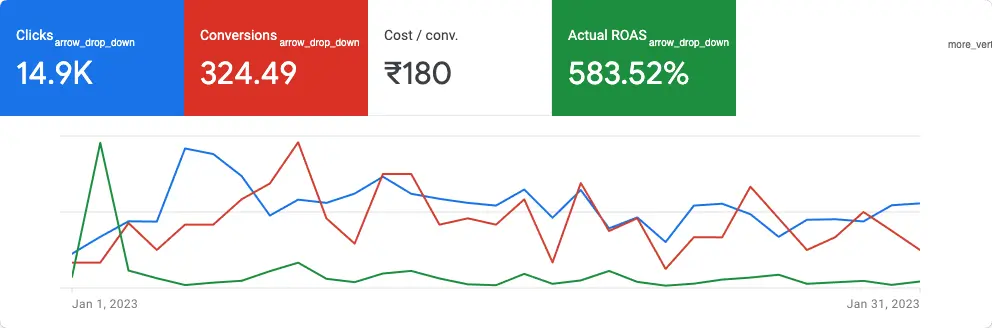 ‍Our client, although had an online presence, has never tried paid advertising on google. Their web presence only went as far as having a social media page. This resulted in lack of leads and their total sales in a month were not up to the mark. The online marketing efforts made by them were unsuccessful in achieving a desired ROI. Their cost of conversion was high and there was a significant difference in their spending and earnings.